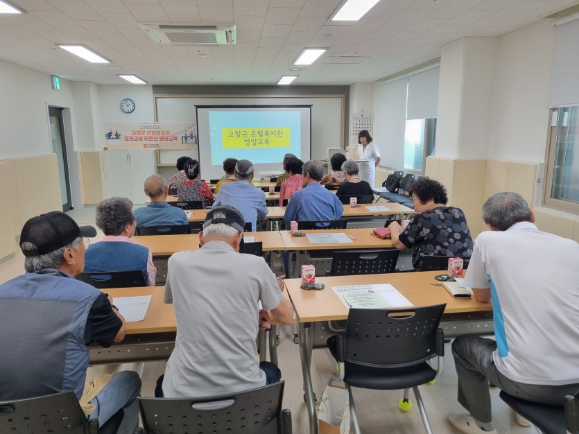 고창군 은빛복지관(관장 도형스님)에서는 2025년 9월16일(화) 2관 강해정 영양사 지도하에 복지관 행복실에서 주성춘외 19명의 어르신들에게 필요한 영양소와 올바른 식사제공방법등을 알아보기위한 영양 교육을 진행하였다 영양 교육이 진행되는 동안 어르신들은 추억의 쑥개떡을 드시면서 교육을 수강하였고 이날 교육은 건강한 노후, 행복한 일상을 영위할수 있도록 도움을 주고 노화에 따른 신체적 변화의 이해와 우리나라 노인의 영양 섭취 현황에 대해 알아보는 계기가 되었습니다.