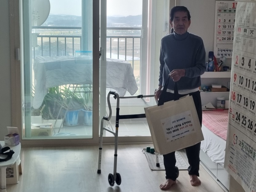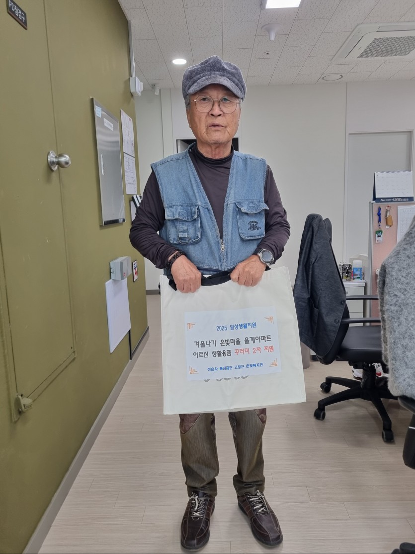 고창군 은빛복지관(관장 도형스님)에서는 2025년 11월03일(월)~7일(금) 율계아파트 입주자중 긴급지원 및 저속득 어르신 10명을 선정하여 생활용품 꾸러미를 제작하여 거동불편자는 각세대 방문하고 건강하신분들은 복지관 사무실에 방문하여 꾸러미를 전달 하였다. 강*현 어르신은 생활에 필요한 물품을 꾸러미로 제작하여 주셔서 매우 실용적으로 사용할수 있게되서 고맙고 경제적 도움이 될것 같다고 좋아하셨고 또한 세심한 부분 까지 신경서주시는 복지관에 감사한다고 말씀하셨다